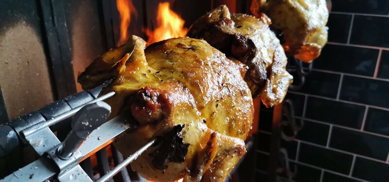 Asador de pollos a la leña con degustación, aparcamiento público a menos de 50 m. Hacemos pollos y carnes a la leña, comida mediterránea para llevar o comer en el mismo local. Entre nuestros platos tenemos tartas y pasteles, así como vinos y cavas.